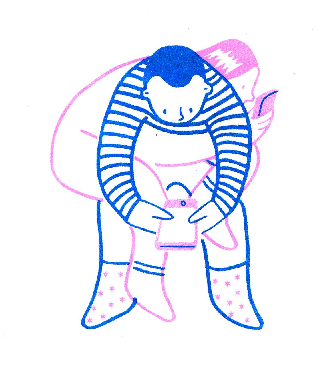 Printed with a risograph and hand-drawn with pen.